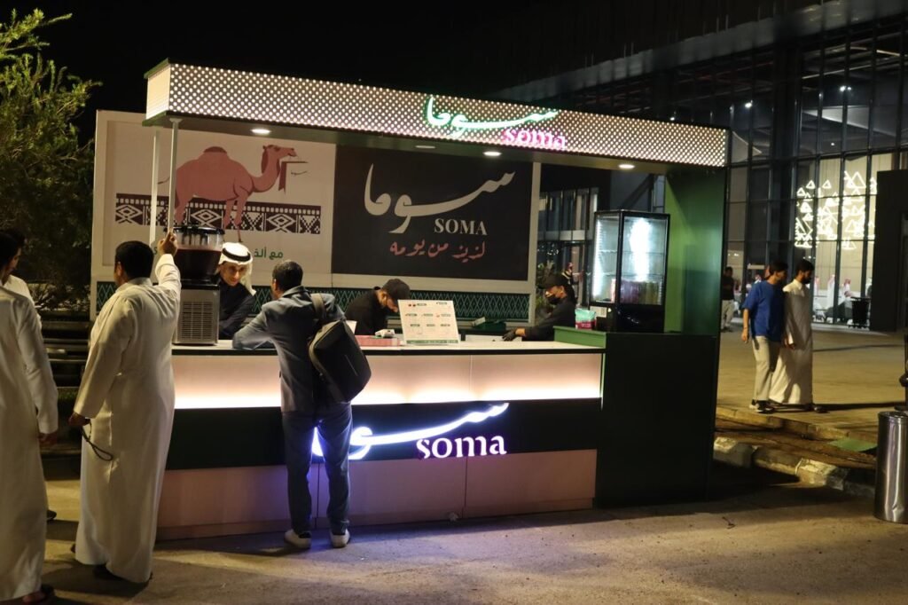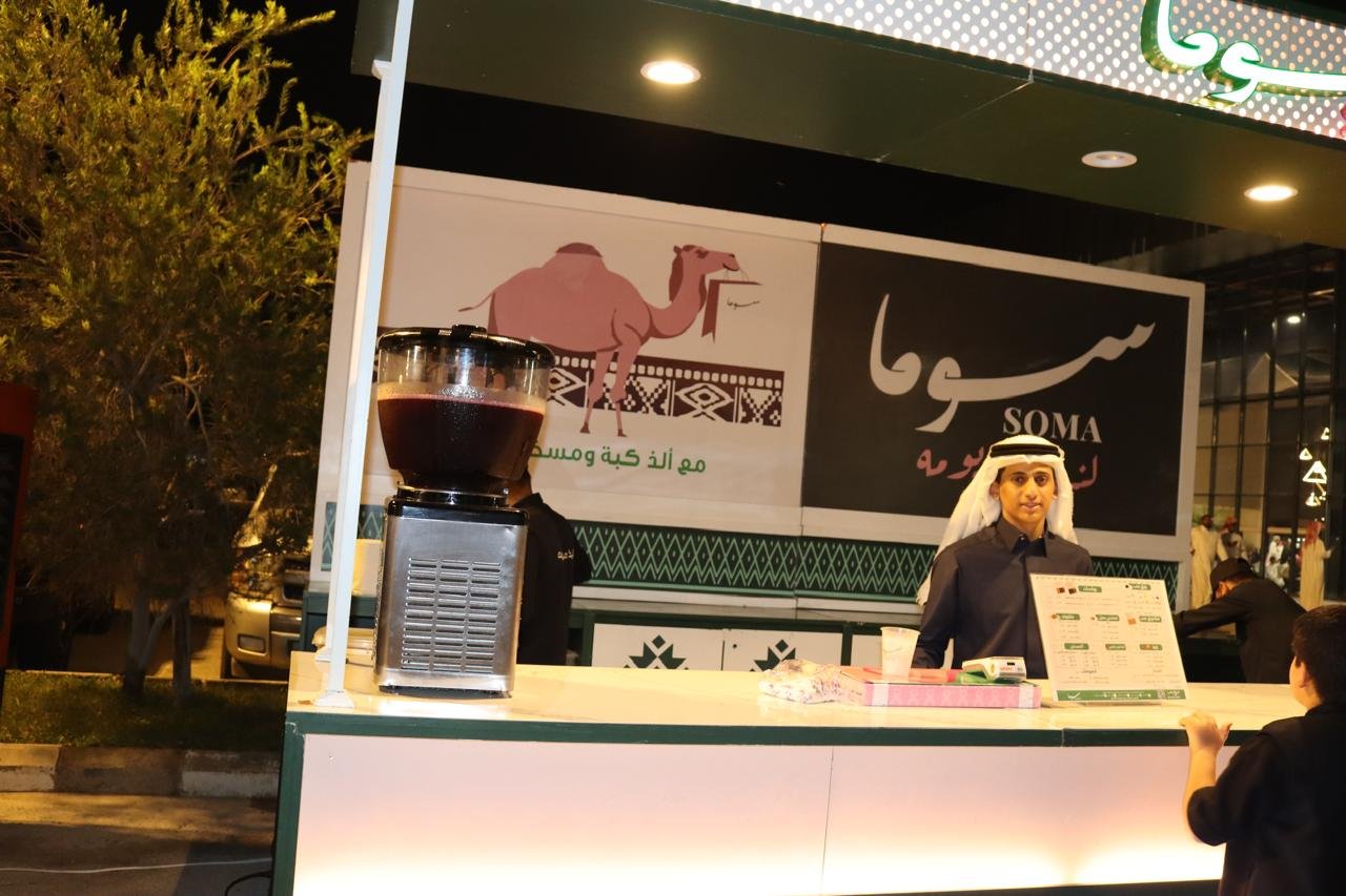 وقد جذب ركن سوما الزوار بما يقدمه من أطباق تراثية دافئة ليشكل نقطة التقاء تجمع الزوار والمشاركين وسط أجواء الصقارة المليئة بالحماس.
